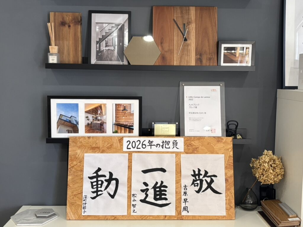 松山智之 一進 BLOG2026.01.17 遅くなりましたが あけましておめでとうございます 2026年もスタートして 半月が経ちました。 yumekukan野坂建設は お陰様で2026年も早々に 1組様のご契約を頂きまして 月末にも今年2組様目のご契約です。 その他も1月は上棟が1組様と 地鎮祭が2組様。 今年も沢山の出会いを大切に 心を一つに 一つずつ 進んで参ります。 本年もよろしくお願い申し上げます。 今年の書初めです。