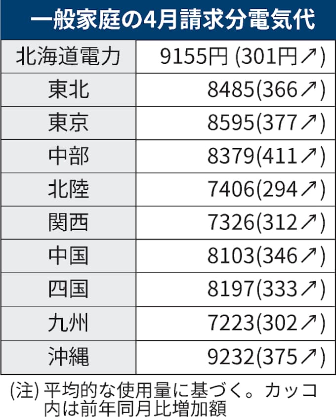 電気料金が最も高いのは沖縄の9232円、次いで北海道の9155円でした。