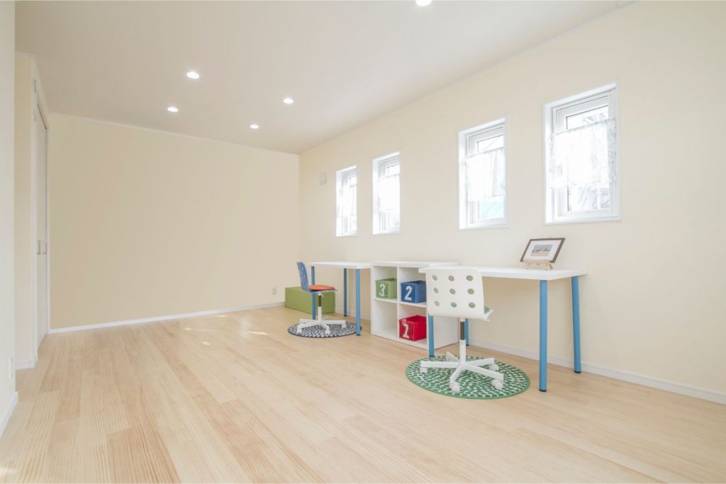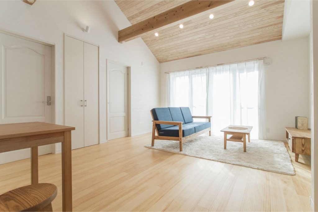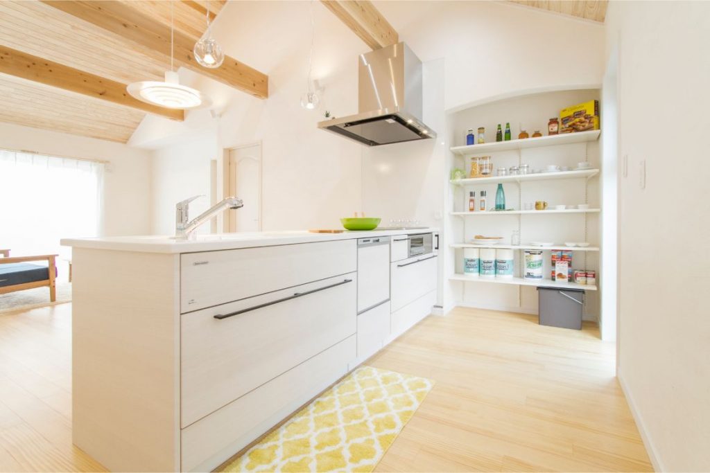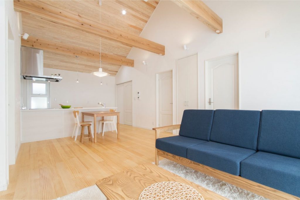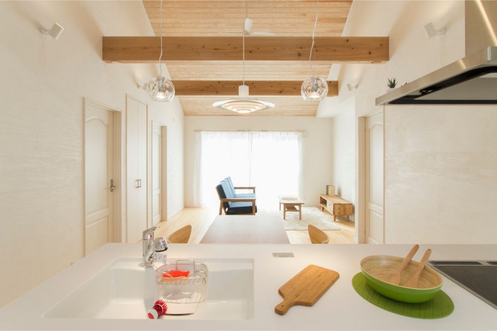 平屋でコンパクト、可愛い平屋です。24坪とは思えない空間を演出した勾配天井。小屋裏収納で収納力UP。家族の集いを重視したプランです。