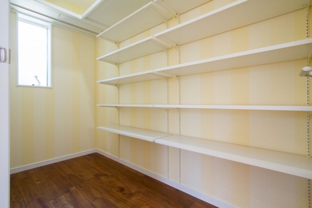 勾配天井の解放感あるリビング。通常2階寝室に設けるウォークインクローゼットを1階リビング横に配置。これもお客様のこだわり、注文住宅ならではですね。