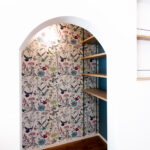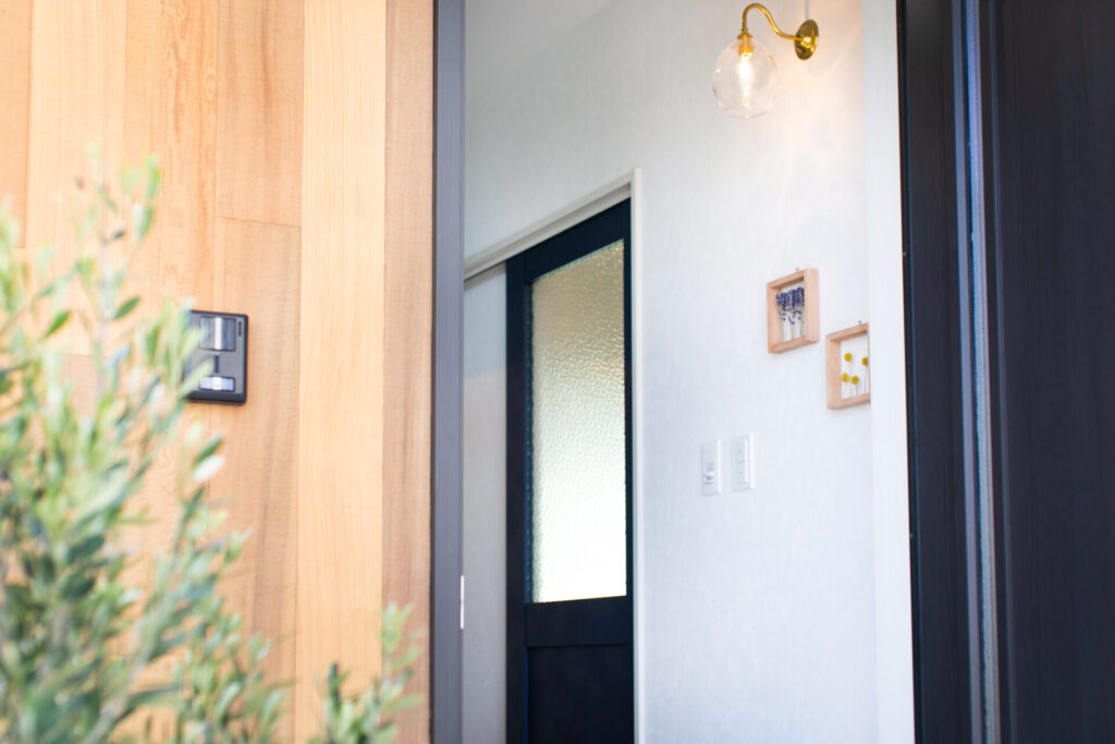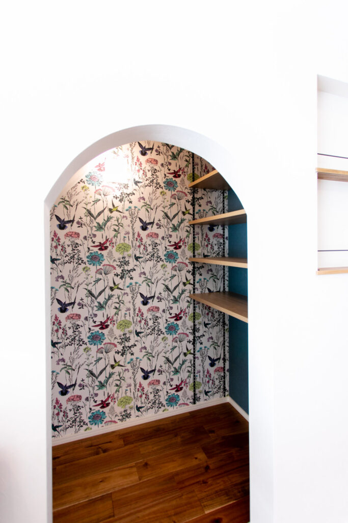 ✓ 玄関ホールは海外製のクロスでお気に入りの空間に